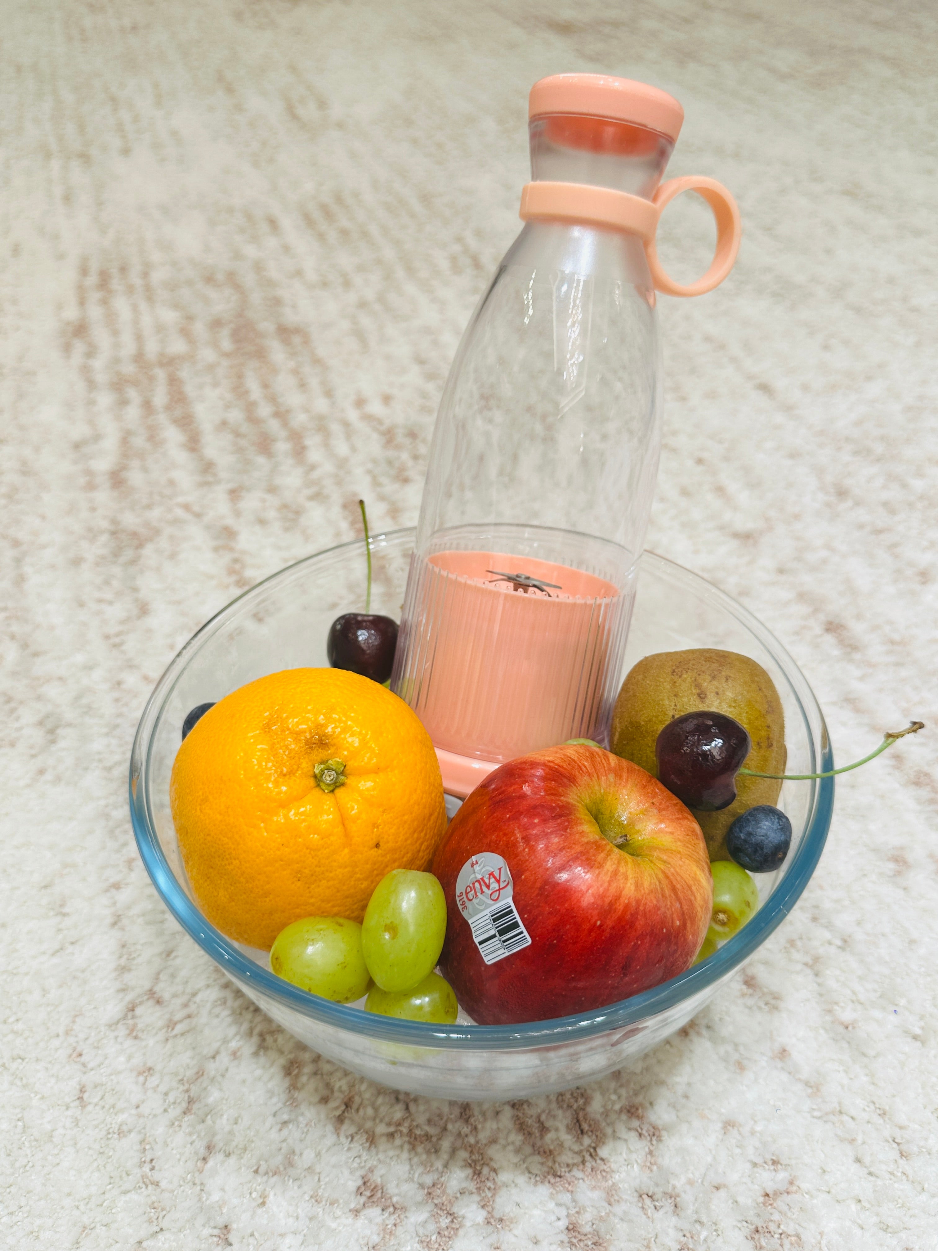 "This blender is seriously a lifesaver! 🍓🥭 I take it to class, the gym, or even when I’m chilling with friends. It’s so easy to use—just toss in some fruit, hit the button, and boom, fresh smoothie in seconds. 🥤✨ Plus, it’s super quiet, so I don’t feel awkward using it in the library or dorm. Cleaning? No stress—just rinse and it’s good to go. My go-to combo: strawberries, mango, and kiwi. 🥝🔥 If you’re always on the move like me, you NEED this!"